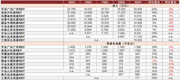 ► 关注强周期板块弹性:自924国新会议以来,我们认为促经济政策陆续推出或进一步带动宏观经济复苏,若政策进一步加码,强周期板块项目经营基本面或有望改善。从资产运营周期来看,消费、一线城市产业园以及货运占比较高的高速项目或率先受益,二线产业园以及物流仓储则仍有待观察。