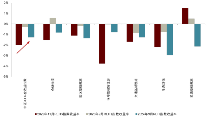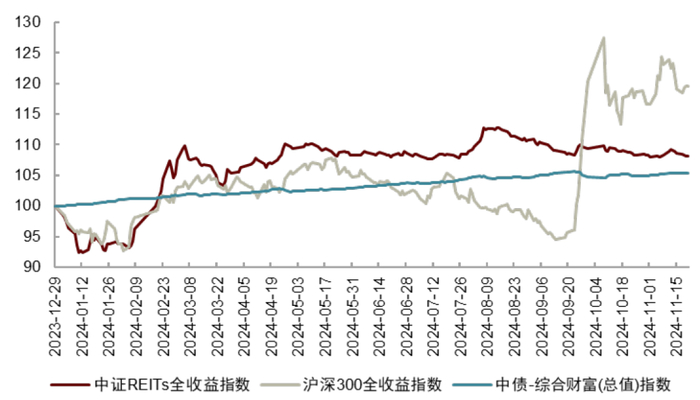 注:1)以中证REITs全收益指数计算;2)截至2024年11月21日 资料来源:Wind,中金公司研究部