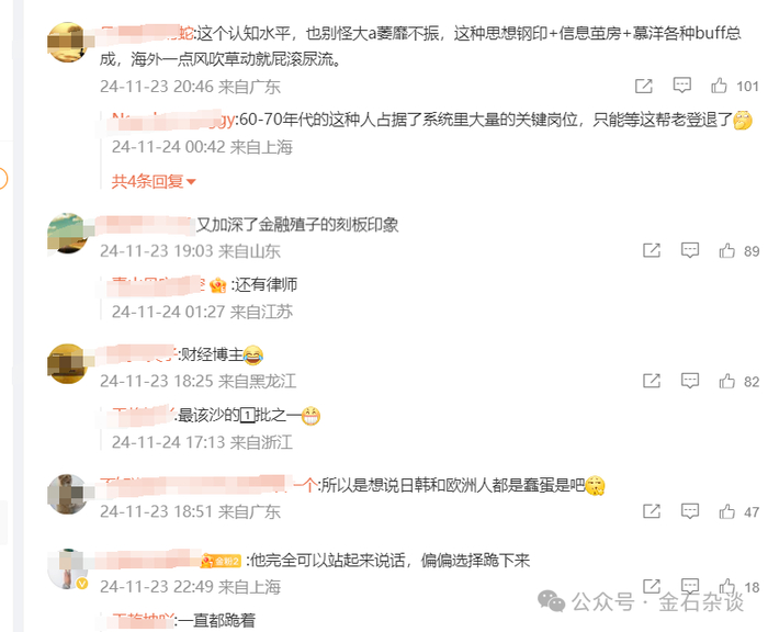 6)这个认知水平,也别怪大a萎靡不振,这种思想钢印+信息茧房+慕洋各种buff总成,海外一点风吹草动就屁滚尿流;他完全可以站起来说话,偏偏选择跪下来。