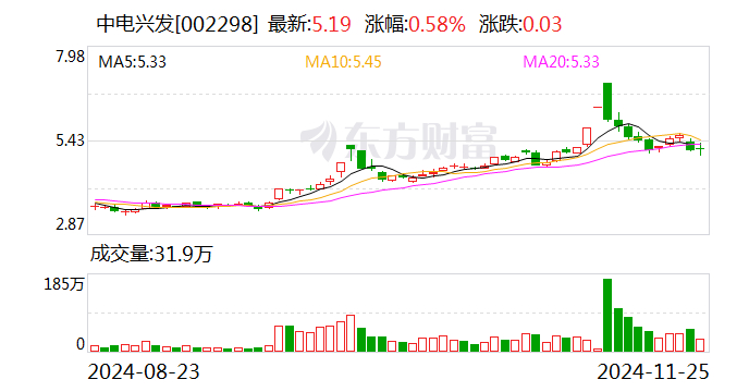 截至25日13点45分,中电兴发涨1.36%报5.23元/股,最新市值38.71亿元,今年累计下跌9%。