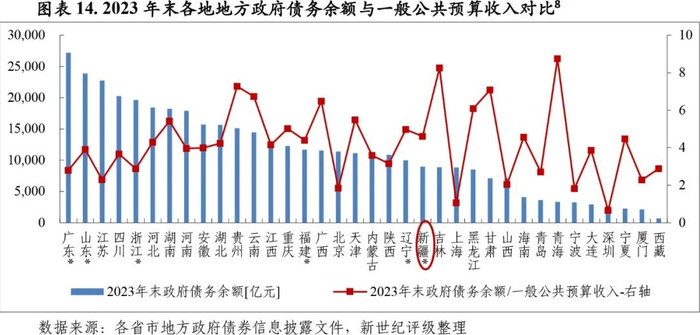 [8] 图中计划单列市单独列示,相关省份的地方政府债务余额与一般公共预算收入已作相应扣除,新疆为不含兵团数据。