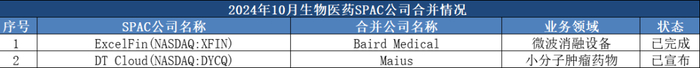 2024年10月,在生物医药领域,有6家公司采取IPO形式上市,2家公司SPAC合并上市,2家公司宣布借壳上市。
