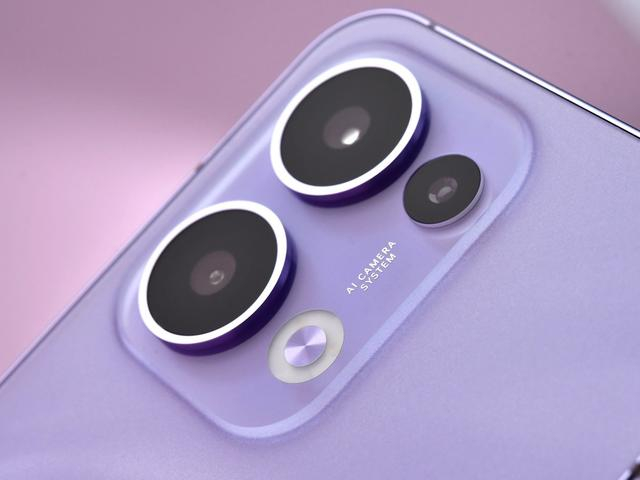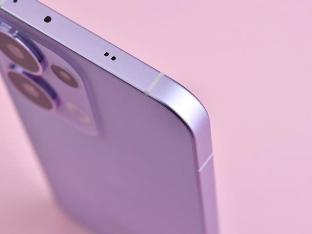 配色方面,OPPO Reno13采用了全新的潮流美学设计风格,主推的蝶蝶紫配色从蝶翼中获得灵感,在机身背部仅有12微米厚的纹理层上进行蝶影光刻工艺,呈现出蝴蝶翅膀般的光影流动效果。