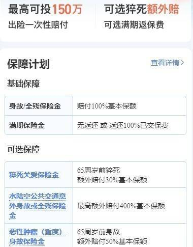 随后,记者在其他平台搜索类似产品,发现在一个名为“护身福,定期寿险”保险产品的宣传介绍中,有“996上班族必备保障”的标题语。该产品有“猝死关爱保险金”:65周岁前猝死,可获得相关赔付。