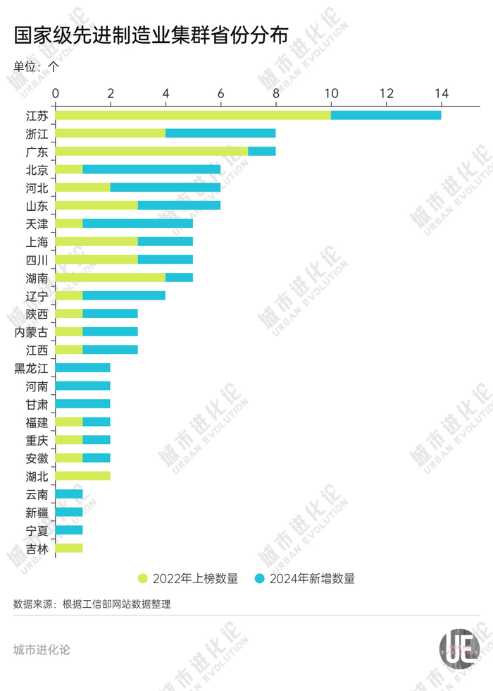 这场“国家队”选拔赛,也成为各个省市的竞赛。根据梳理,全国80个先进制造业集群分布在25个省份,其中不少省份在今年实现零的突破,更多省份则在努力扩大集群数量。