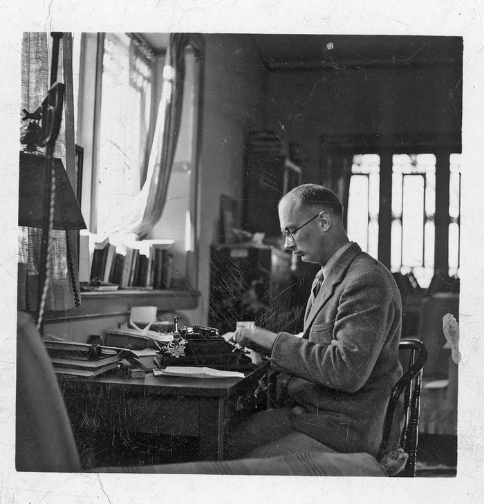 1938年,林迈可在燕京大学的书房里工作。