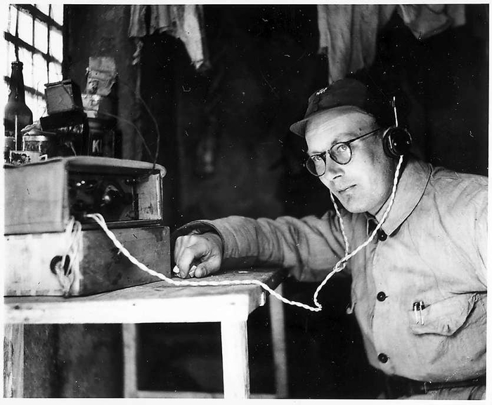 1942年,林迈可在晋察冀军区担任无线电通信顾问,从事电台设备的整修和教学工作。