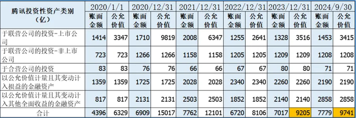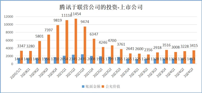 2024年9月30日,于联营公司的投资-上市公司账面金额1453亿,公允价值3415亿。