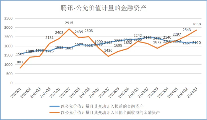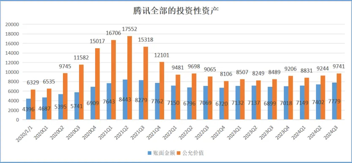 腾讯的投资性资产账面价值与公允价值对比如下图: