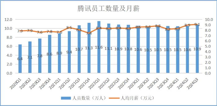 兵马未动,粮草先行,人数增加了,说明腾讯可能重启扩张之路。三季度的平均月薪9.1万元。