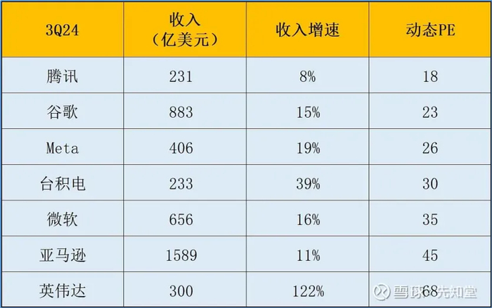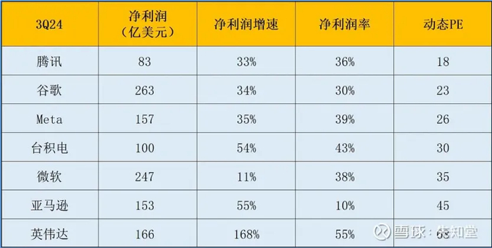 雪球“先知堂”对此有较为深入的分析,在《外资凭什么不给腾讯高估值?》对比了腾讯、谷歌、META、台积电、微软、亚马逊、英伟达等7家公司的估值,
