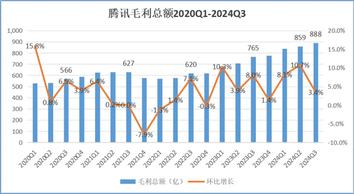 2024年Q3毛利总额888亿,同比增长16.1%,环比增长3.4%,创历史性新高。