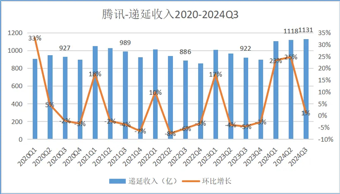 2024年Q3递延收入1131亿,同比增长22.7%,环比增长1.2%,创历史新高。