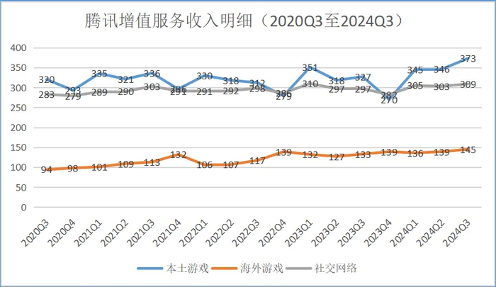 增值服务收入分为本土游戏收入、海外游戏收入以及社交网络收入,具体明细如下: