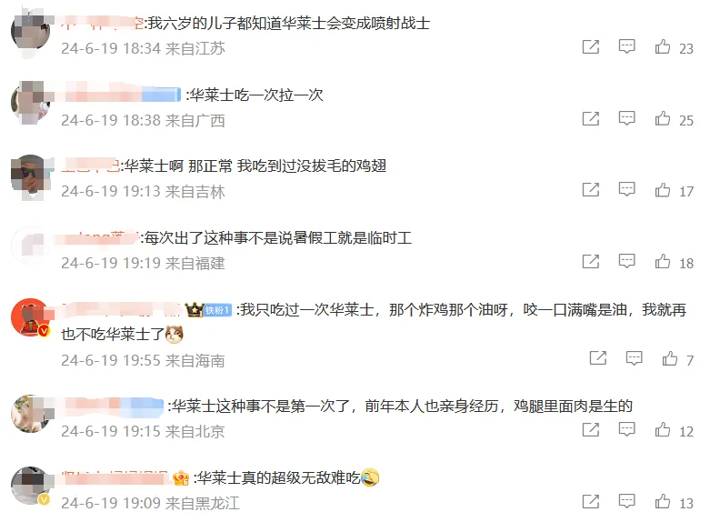 有网友评论称,“塔斯汀也是这样,好几次了,商家都喜欢嘴硬”“华莱士吃一次拉一次”“不是第一次了”。但也有人表示,“我吃没事,是肠胃好吗”“不同店差别很大”。