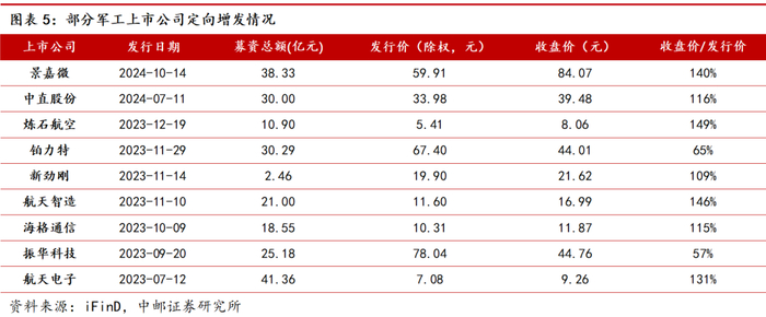 2)军工新趋势,建议关注军工新技术、新产品、新市场,产业链相关标的包括国睿科技、烽火电子、航天智造、高华科技、华秦科技、航天南湖、中科海讯、海格通信、芯动联科、臻镭科技、铖昌科技、航天彩虹、三角防务、润贝航科、联创光电等。