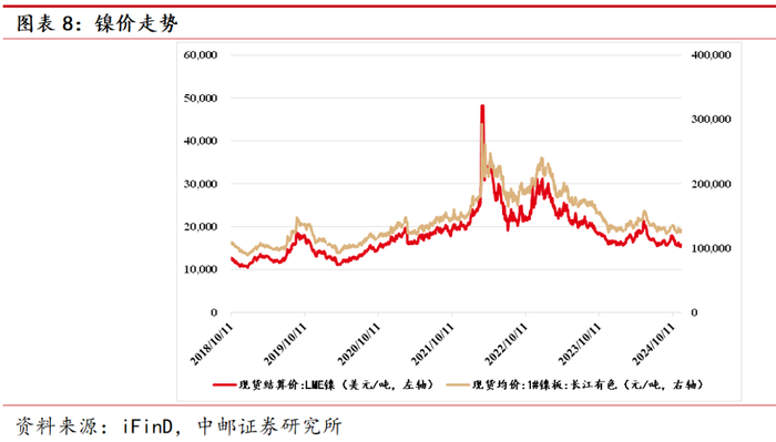 镍价跟踪:11月22日,伦敦金属交易所金属镍现货结算价格15610美元/吨,较上周末价格上涨0.71%;长江有色市场镍板现货均价126700元/吨,较上周末价格上涨1.73%。