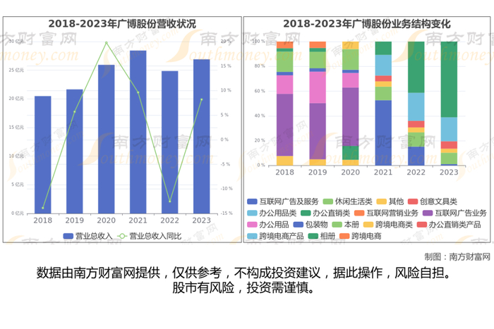 广博股份于2007年1月10日在深圳证券交易所上市,公司主营业务为公司文教办公用品业务、互联网营销与服务业务、跨境电商业务。