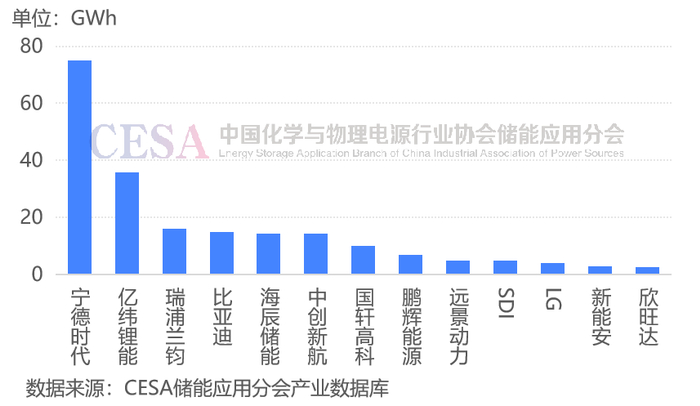其中,宁德时代储能电池出货量约75GWh,全球市场占有率34.80%,居全球第一,全年储能电池出货预期105GWh;亿纬锂能储能电池出货量35.73GWh,全球市占率16.58%,位列全球第二,全年出货预期50GWh;瑞浦兰均、比亚迪、海辰储能、中创新航、国轩高科、鹏辉能源、远景动力等企业均进入全球出货量前十榜单。
