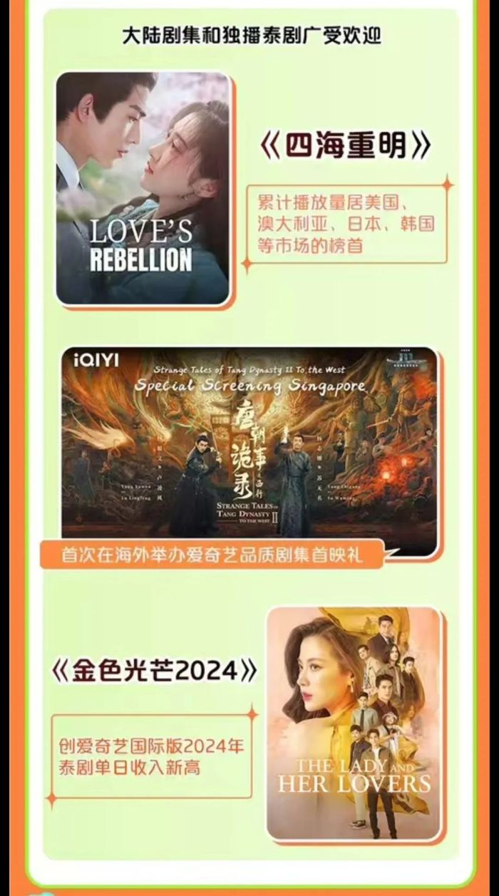 在本土化自制内容方面,爱奇艺国际、腾讯视频We TV均与东南亚各国的制作公司或官方机构达成合作协议,共同制作或购买更具当地特色的剧集,最大程度招揽当地观众。但不论是制作更适应本土化的剧集或者购买更丰富的本土版权,均需要长期、大量资金的支持。