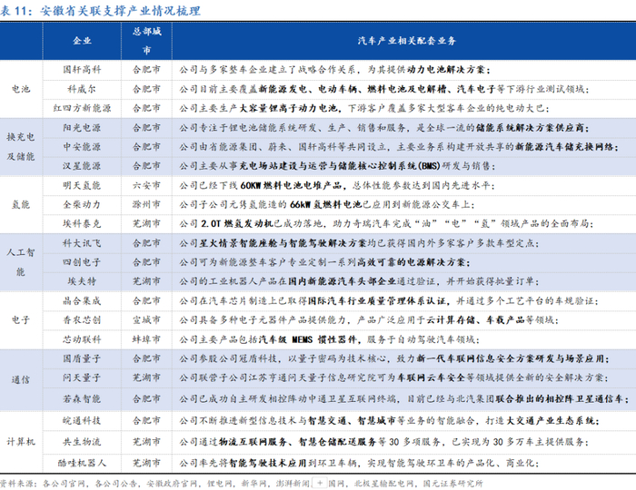 独木不成林,关联产业有力支撑安徽省汽车产业实现产业快速发展与结构升级。安徽省汽车产业的蓬勃发展得益于一系列战略性新兴产业的强力支撑,包括电池、充换电与储能、氢能、人工智能、通信、电子和计算机等。上述产业的协同发展为汽车产业的转型升级和高速增长提供了坚实的基础。
