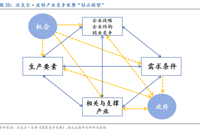 飞轮运转,聚集资源,安徽省集齐汽车产业竞争优势全要素,开拓汽车产业发展新阶段。产业飞轮运转,安徽省汽车产业高速发展,同时也带动政策、资金、产业、科研的共同配合,打造了安徽省汽车产业的“黄金军团”。在政策层面,安徽省既有体系完备的产业规划与支持政策,同时具备其他地区稀缺的,具备一系列成功案例的 “以投带引”经验;在产业层面,七大整车厂协同十六市完备的汽车产业链企业,既协同又竞争,带动全产业链不断深化升级;在生产要素层面,丰富的股权投资基金为汽车产业提供了充足的资金要素,多年产业聚集效应为本地区培养了大量的优秀人力资源,以中科大、合肥工业大学为代表的全国领先的汽车、科技类高校持续为产业升级提供科研与智力要素;在需求层面,强劲增长的安徽经济,持续创造本土汽车新需求;在关联产业层面,新能源、半导体、AI等面向智能电动时代汽车产业所需的支持产业同样也是安徽的产业强项;而在未来机会层面,新能源方兴未艾,自动驾驶大潮席卷,固态电池、氢燃料趋势逐步逼近,商用车电动化与汽车出海正在创造新一波的发展潮流,安徽汽车产业在上述领域,均有亮丽表现。上述这些因素集中在一起,恰好构成了迈克尔·波特产业竞争优势“钻石模型”的全部要素。为未来汽车产业进一步升级向前,奠定了坚实的基础。