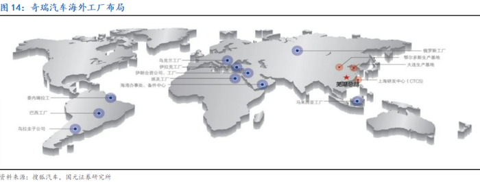 走出去(2001-2013年):奇瑞汽车的国际化始于2001年,首次出口到中东市场,标志着中国自主品牌汽车的海外拓展。随后,奇瑞通过出口贸易,将产品陆续推向叙利亚、埃及、伊拉克、阿尔及利亚、黎巴嫩等市场,并逐步在中东、北非市场成为当地著名汽车品牌。自此,奇瑞成为我国第一个将整车、CKD、发动机及整车制造技术和装备出口到国外的自主汽车品牌;