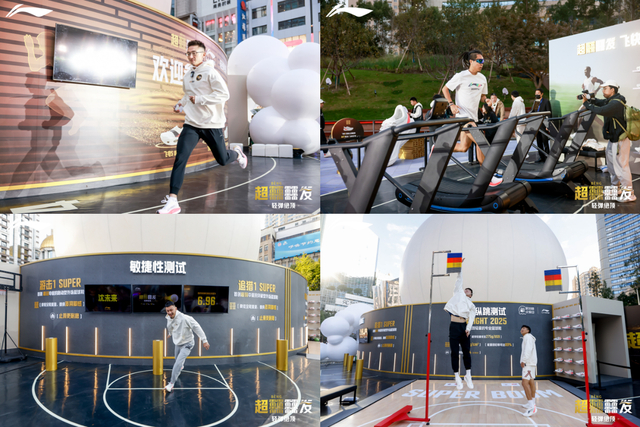 在快闪空间的外场,李宁还特别设置了更加丰富有趣的产品体验区域。在「跑步飞行测试」区,嘉宾可以通过无重力跑步机进行1KM跑速纪录的超䨻飞跑赛,来切实感受飞电5竞速跑鞋家族的轻弹实力。同时,也可以通过测试芯片观察到个人触地腾空时间数据在飞电家族跑鞋赋能下的变化,体会“抬脚更轻、提速快”带来的极致飞行体验。「敏捷性测试」模拟户外水泥地面球场,实测反伍游击1 SUPER及反伍追猎1 SUPER对敏捷反应的提升,感受超䨻科技为球场启动提供的强大动力。「纵跳测试」针对ULTRALIGHT 2025,通过在木地板上的纵跳摸高测试,体验极致轻量化球鞋助力球场上的每一次跳跃腾空。