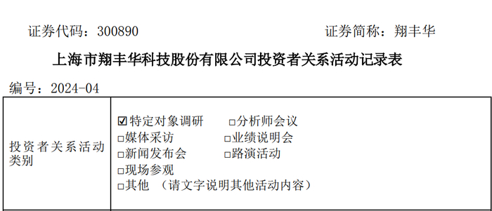 翔丰华11月25日发布投资者关系活动记录表,公司于2024年11月21日接受7家机构调研。投资者关系活动主要内容介绍: