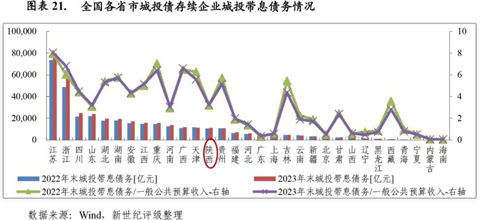 [3] 城投债统计中,渭南市城投债余额包含华阴市和韩城市,榆林市城投债余额包含神木市,西咸新区城投债余额全部纳入西安市。