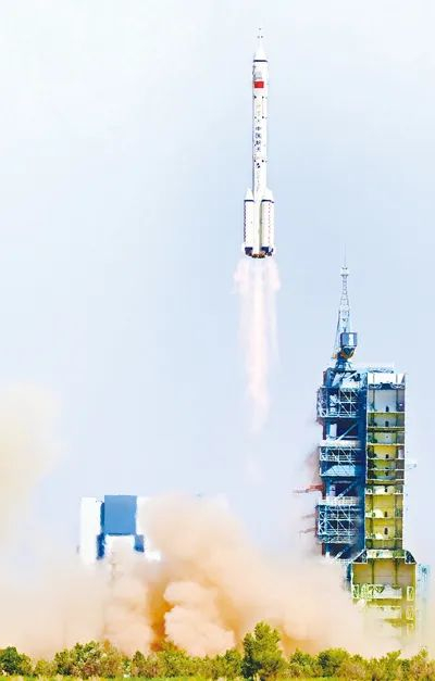 神舟飞船搭乘长二F火箭发射升空。