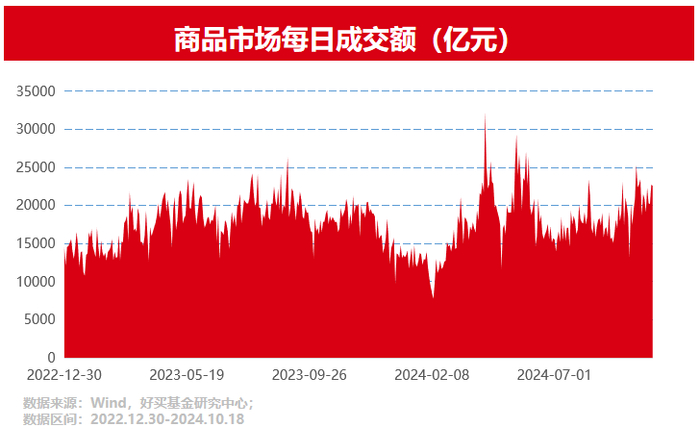 另一方面,看市场整体的流动性环境,2024年商品期货市场日均成交额约为1.76万亿,与2023年1.79万亿水平相当。