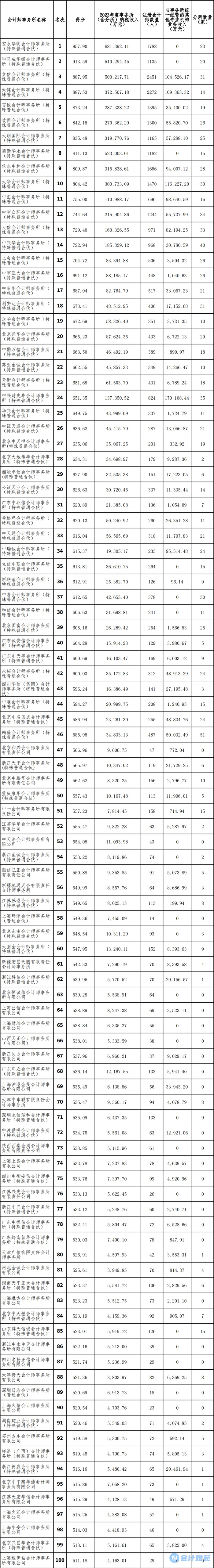 《2023年度会计师事务所综合评价百家排名信息》正式发布