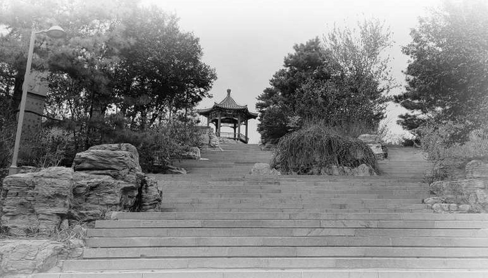 我一边往仿造的幽州台上走,一边想,如果眼前的一切是历史舞台的布景,那么画外音便是:“前不见古人,后不见来者。念天地之悠悠,独怆然而涕下。”心中想的,自然是陈子昂。