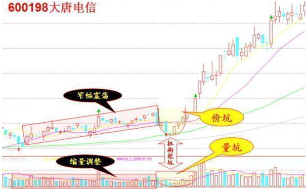 一只股票已经回调很久,处于平台整理状态后,机构开始接二连三地推荐,看基本面也的确不错,可股价就是不涨,某一天却突然向下破位了,它的日K线在做了一个坑形后一直涨了上来,并轻松地突破了原来整理的平台,绝尘而去。