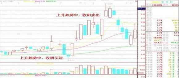 即选择日K线收阴时买进,选择日K线收阳线时卖出。