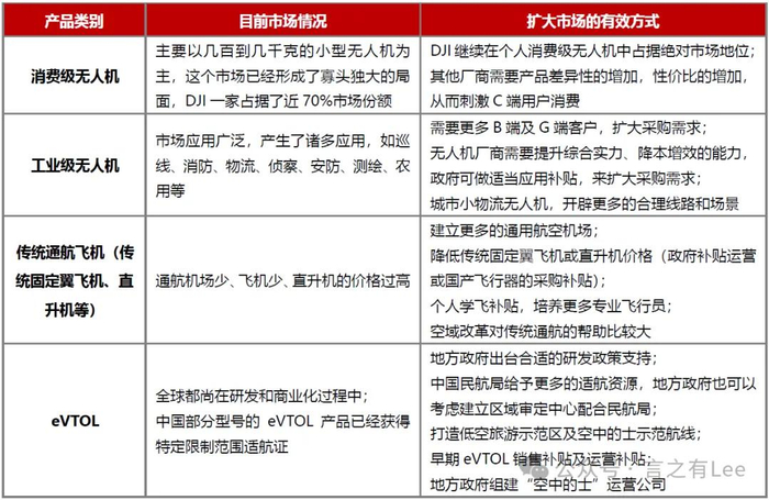 低空经济产业核心部分为主机厂,即低空飞行器制造企业。目前,低空领域的主要产品有备受关注的eVTOL(电动垂直起降飞行器)、无人机(消费级、工业级)、传统通航飞机等。其中,eVTOL作为低空经济产品中的重要组成部分之一,有望成为最具潜力的低空领域赛道。