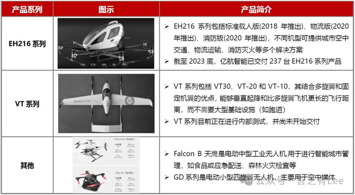 亿航智能的业务主要涵盖空中交通(包括载人交通和物流运输)、智慧城市管理和空中媒体等应用领域。公司空中交通的主要产品系列如下: