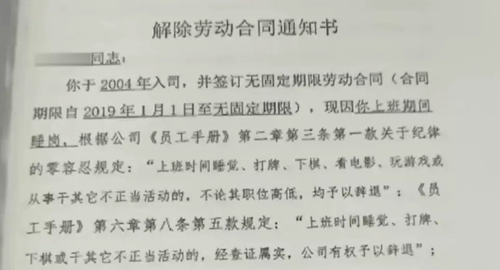 因上班时睡了1小时觉被无情开除
