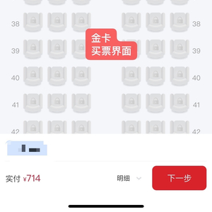进入选座页面,可以看到靠前部分11排至16排座位大多数为不可选,剩下的座位上锁,能被选择的最靠前座位为18排中间,不需要额外加钱。另外,27排至28排有座位上锁,最后一排也有座位上锁。