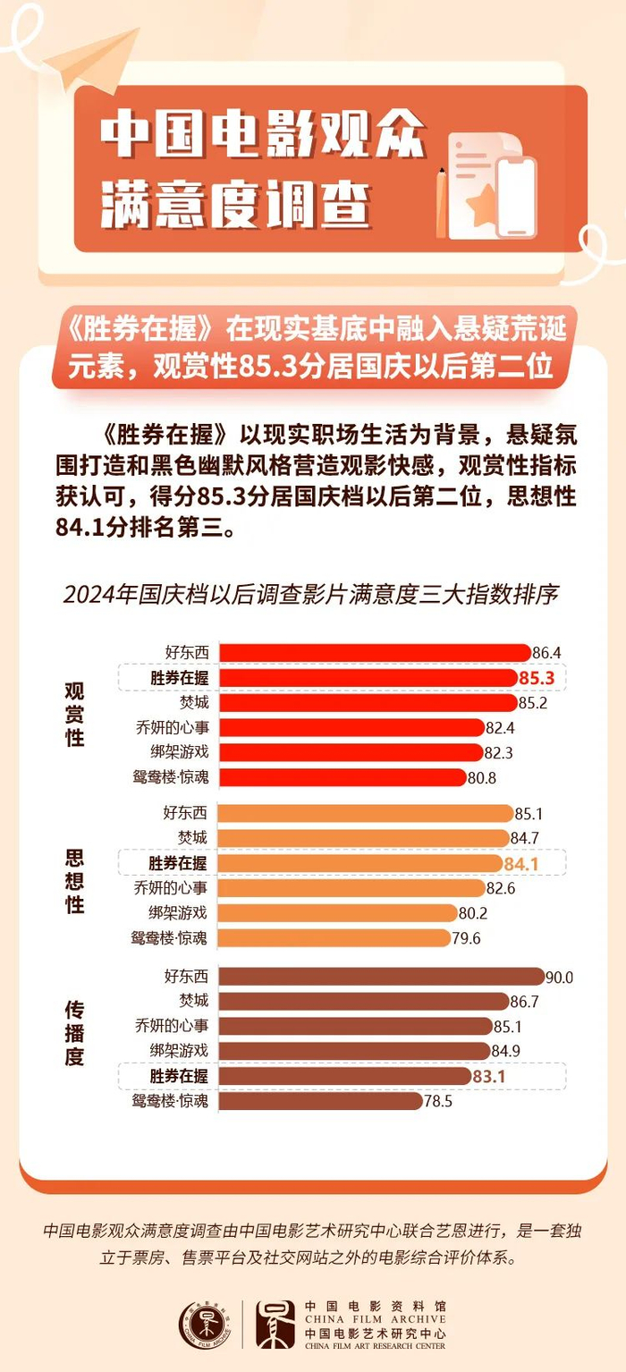 《胜券在握》以悬疑荒诞手法刻画职场现实,满意度84.5分居相对高位