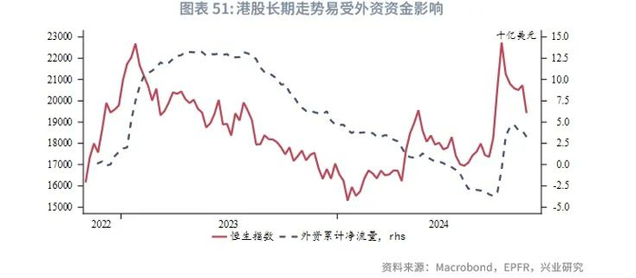 总的来看,内地基本面的好转和企业盈利的改善是决定明年港股表现的主要因素。美联储持续的货币宽松将带动资金面的逐步宽裕,助力外资流入港股。信心的回归会缓慢修复估值,推动港股回升。但特朗普可能出台的关税政策和其他对华政策是港股面临的较大风险点。