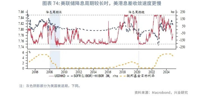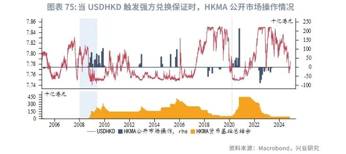 往前看,美国经济将逐步放缓,但软着陆仍是基本情形。在美联储降息节奏放缓的基础上,美港息差或将震荡下行,我们预计港元兑美元仍在7.8以下,趋近强方兑换保证,香港金管局进行干预的可能性较小。