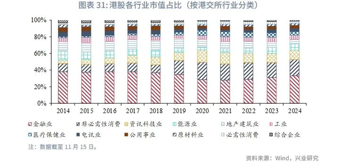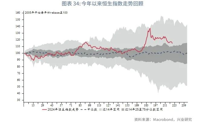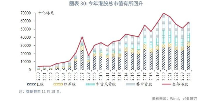 自年中开始,随着美联储宽松周期的开启,定期存款利率逐步下滑,居民部门的资金逐步转向活期存款,有利于未来的投资和消费。贷款利率逐步进入下行通道,近期银行贷款的同比下滑也在逐渐缩小。同时,香港金管局和相关银行在10月推出包括降低银行资本等多项措施来降低中小企业借贷标准。2024年第三季度的“中小企贷款状况调查”显示,中小企信贷状况略有改善。利率下调将缓解港股资金面压力,叠加内地与香港监管对互联互通的持续优化,未来资本市场活动也将继续修复。