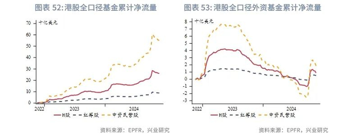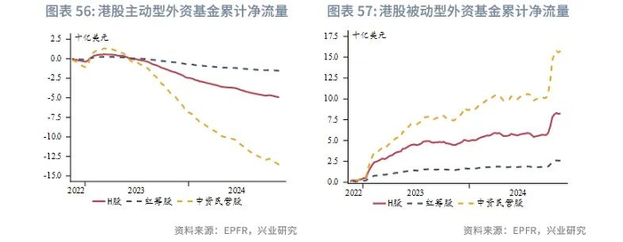 展望明年:盈利端来看,我们预计明年港股市场盈利状况有望受益于内地经济企稳而有所改善。影响港股上市企业盈利的主要因素逐渐从中美经济周期切换至中国经济周期。自9月底中国政府推出一揽子增量政策以来,内地经济已经开始出现积极迹象,10月税收数据好转也从侧面予以印证。明年中国政府可能推出更多增量政策,推动内地经济企稳,提振企业盈利。资金端来看,虽然南向资金在港股成交量占比中稳步提升,但港股长期走势仍主要受外资资金影响。美联储降息趋势的确定将降低资金成本,活跃香港资本市场,吸引外资流入,这是开启香港股市反弹的先决条件。但目前看来,外资参与度相对较低。主动型外资在香港股市仍维持净流出,被动型外资在9月小幅加仓香港股市。估值端来看,香港股市的估值仍处于历史较低水平,港股沽空率也较低。
