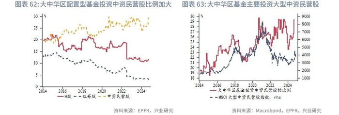 二级市场方面,今年港股在亚太股票市场中表现较优。4月的地产“组合拳”和9月的刺激政策推动年初至今港股的上涨。从9月以来的资金流向来看,主要是被动型外资资金流入港股,其中大多流向中资民营股[1] 。对于配置大中华区的基金而言,中资民营股的配置比例在不断上升。分行业看,中大型[2]资讯科技业股票表现最好;中资股中,大型中资民营股表现要好于H股和红筹股;从风格看,中型成长股[3]今年以来表现最好。