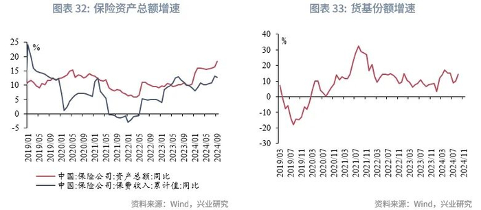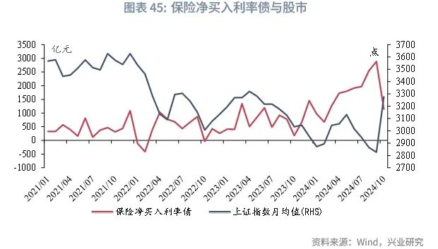 根据兴业研究宏观市场部的观点,2025年权益市场或震荡偏强,保险资金或部分进入股市,在债市上较难展现出今年的配置力度。而明年长端及超长端利率债供给会有较为明显的放量,保险作为长债、超长债重要的承接机构,其配置力度可能的减弱或削弱长债、超长债的下行幅度。