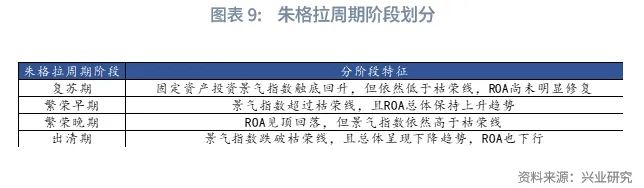 朱格拉周期是7年至11年左右的设备投资周期,我们在《一文读懂朱格拉周期》[2]中通过工业企业固定资产投资景气指数、工业企业ROA将我国的朱格拉周期划分为复苏期、繁荣早期、繁荣晚期、出清期。2016年第二季度起,我国进入了新一轮朱格拉周期,同时,我们在报告《突破周期的宿命——2024年宏观经济展望》[3]中提出我国正处于2016年以来的朱格拉周期的繁荣晚期之中。