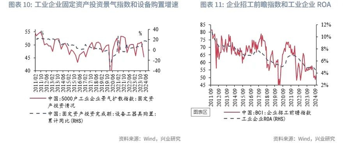 从已有的数据来看,在工业企业固定资产投资景气指数方面,2024年第一季度5000户工业企业固定资产投资景气指数为45.4%,在前5年中仅高于2020年,但随着鼓励企业设备更新政策的出台,工业企业固定资产投资景气指数或有一定提振。在工业企业ROA方面,2024年工业企业ROA延续下行,历史数据显示,就业的拐点领先于工业企业ROA的拐点。2011年以来,工业企业ROA的底部企稳的时点通常滞后BCI企业招工前瞻指数触底回升的时点约3-8个月。当前BCI企业招工前瞻指数处于2011年以来的10%以下分位数水平,向上弹性偏弱,短期较难看到较为明显的回升,2025年工业企业ROA仍将下行寻底。以此推算,2025年我国或处于朱格拉周期的繁荣晚期/出清期中。