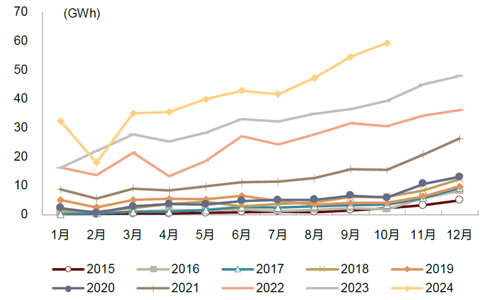 海外扩产有望贡献增量。同时,海外光伏制造产业亦在加速,中国企业出海+海外本土制造需求提升,BNFF预测2024年全球光伏装机超500GW,主流市场包括中国、美国、印度等。我们判断明年,一方面,海外本土制造需求在贸易政策的驱动下或提速,且对设备的价格敏感度较低,驱动设备企业海外订单量价齐升;另一方面,中国企业出海持续,产能布局由东南亚辐射至中东等地区,产能建设覆盖全产业链,带动设备配套需求增长。